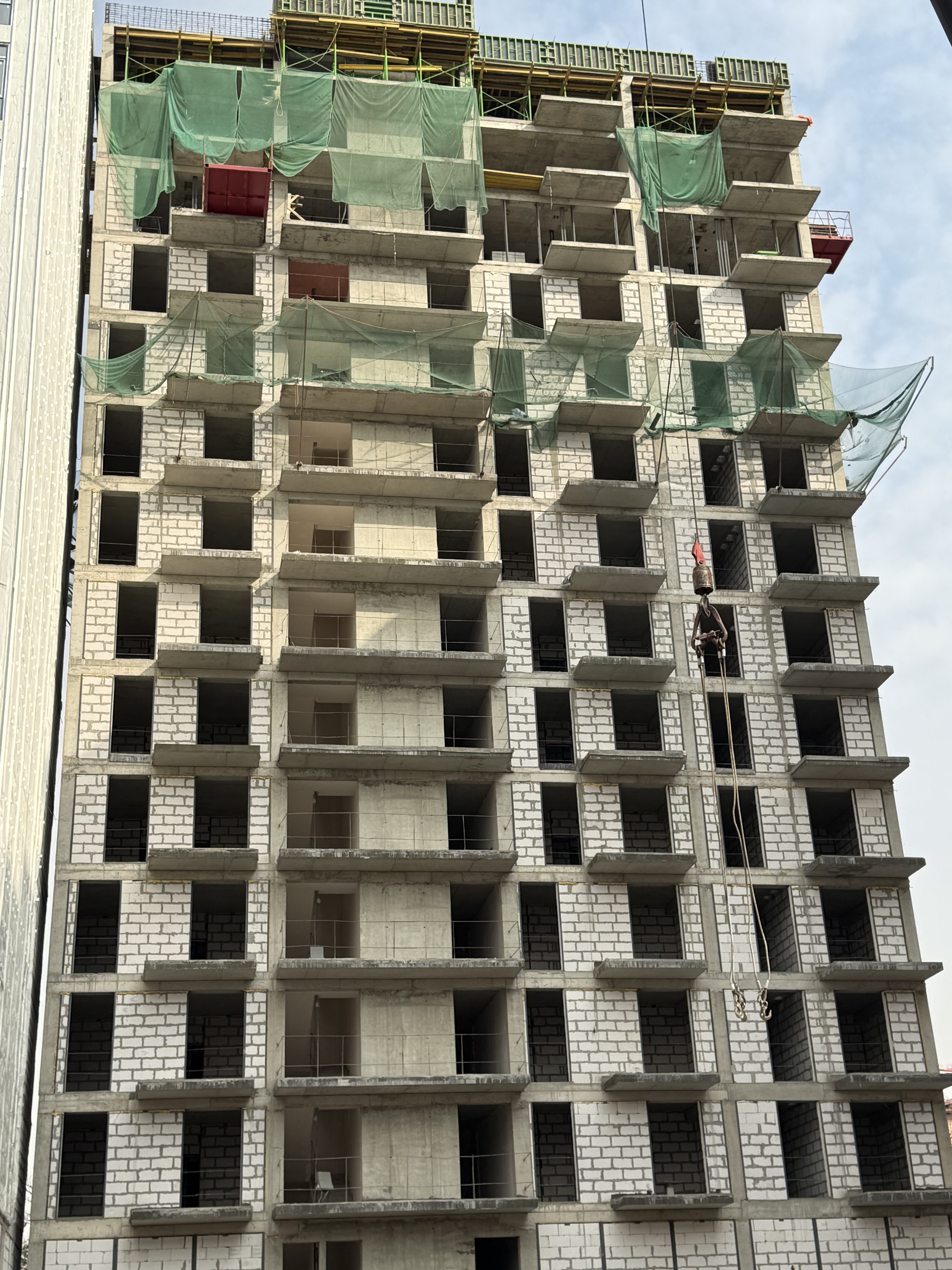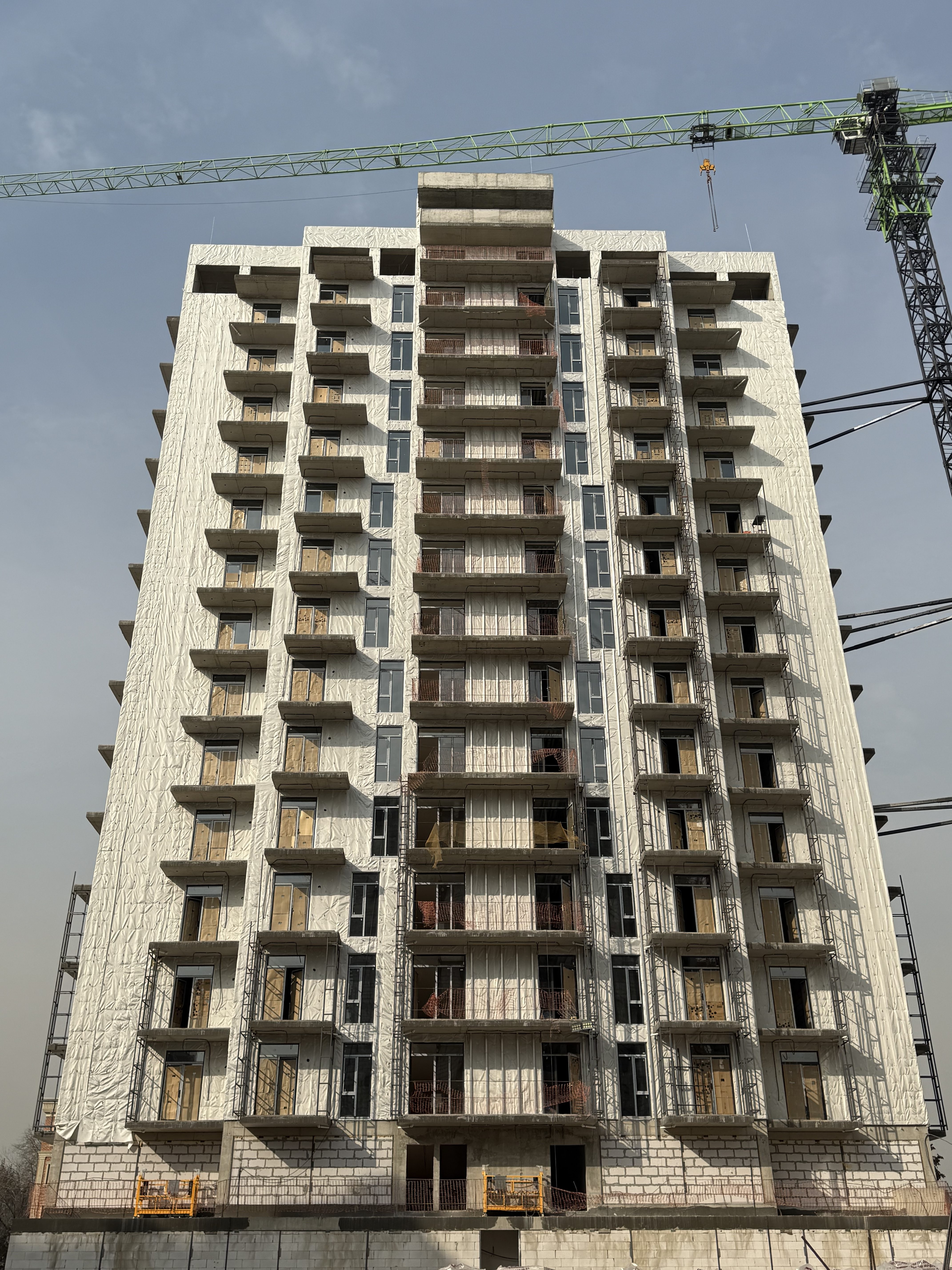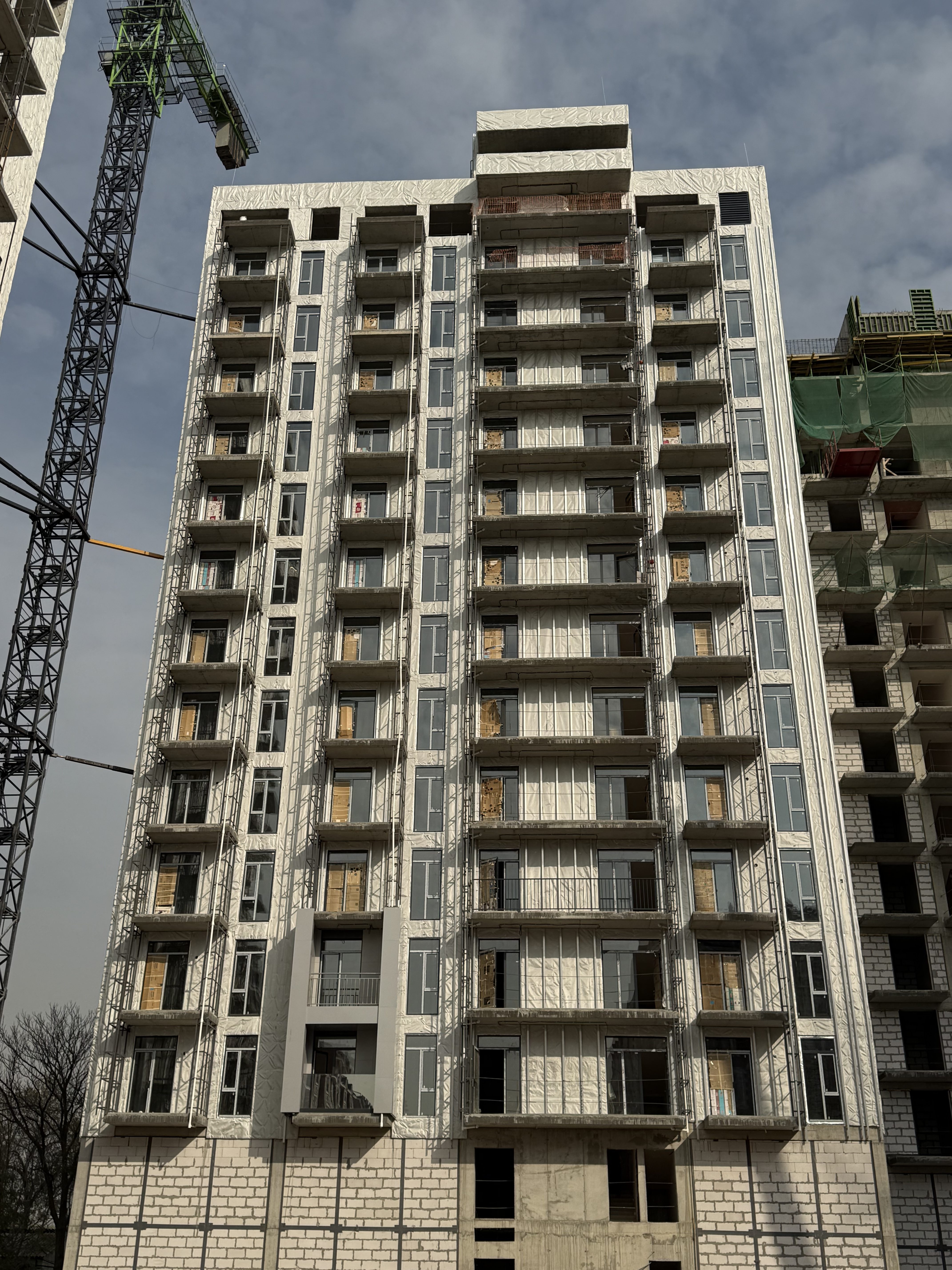 Фасад — закончены работы по утеплению, монтажу фасадного профиля. Начат монтаж керамогранита.